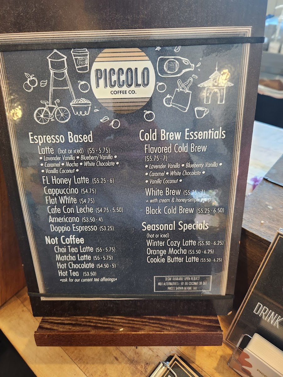 Welcome to Piccolo Coffee Co., tucked away in the charming downtown of Winter Garden, Florida. This delightful coffee spot masterfully blends quality brews with a cozy atmosphere, making it a true hidden gem.